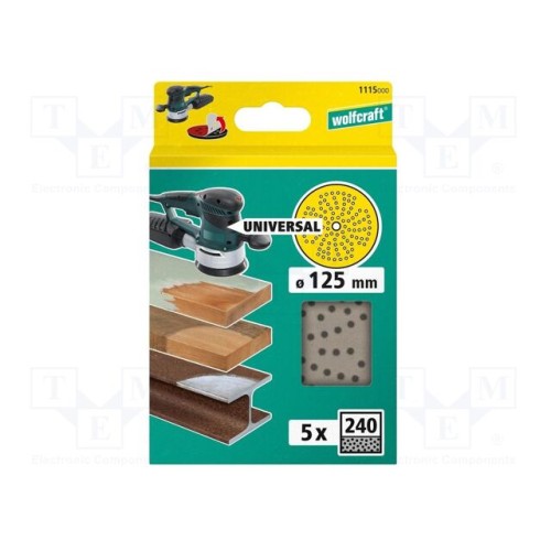 WOLFCRAFT 1115000 | Шліфувальний диск; 125мм; Гранулювання: 240; з отворами; 5шт.