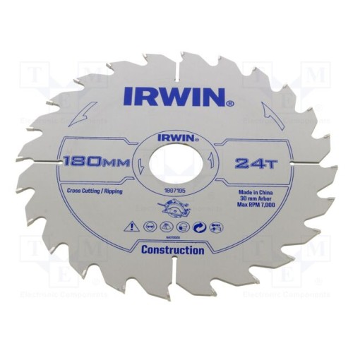 IRWIN 1897195 | Циркулярна пила; Ø: 180мм; Зуби: 24; дерево; 30мм