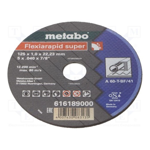 METABO 616189000 | Відрізна фреза; Ø: 125мм; Товщ.диска: 1мм; сталь; 22,23мм