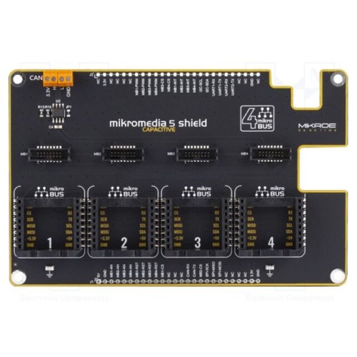 MIKROE MIKROMEDIA 5 CAPACITIVE SHIELD | Перехідна; макетна плата; Роз\'єми розширень: 4