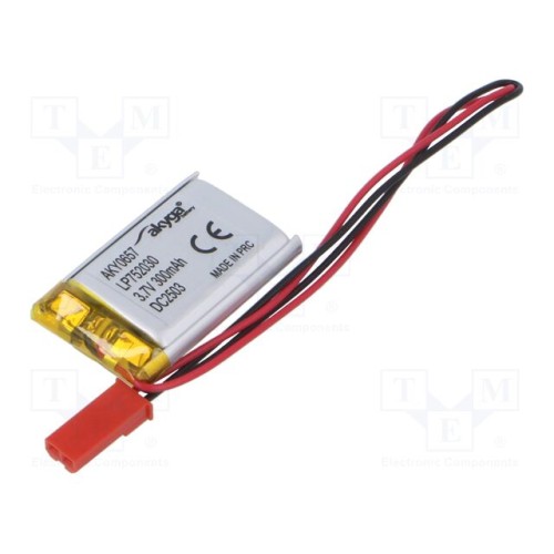 AKYGA BATTERY AKY0657 | Акум: Li-Po; 3,7В; 300мАг; проводи,роз\'єм JST SYP-02T-1