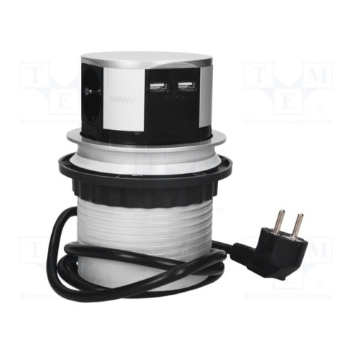 ORNO OR-AE-1342(GS) | Мережевий фільтр: меблева; меблева розетка; IP20; 3680Вт; срібний