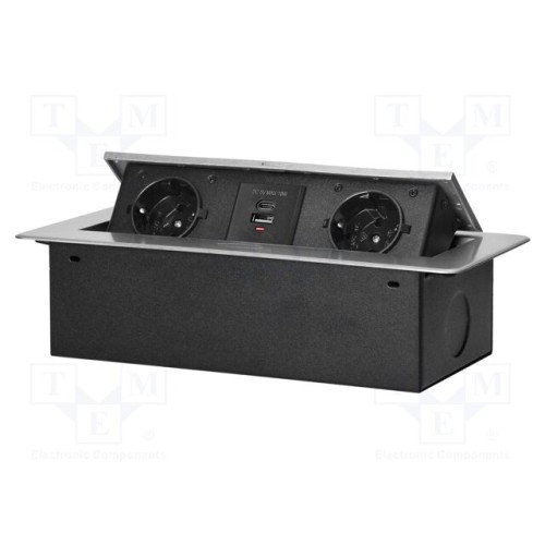 ORNO OR-GM-9034(GS)/G | Мережевий фільтр: меблева; меблева розетка; IP20; 3680Вт; срібний