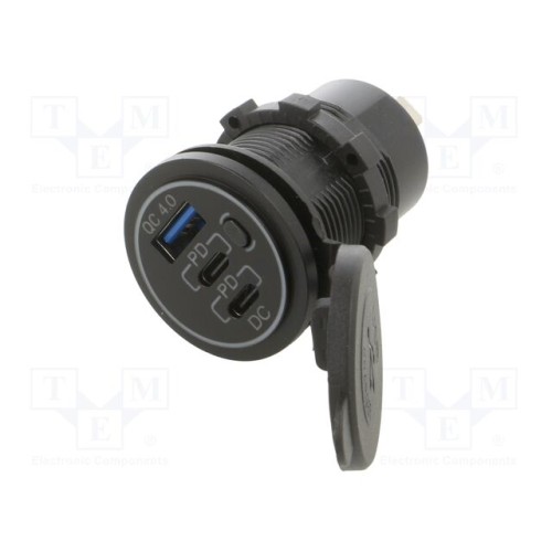 ESOL 45042 | Блок живлення USB; USB A гніздо,USB C гніздо x2; чорний