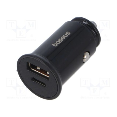 BASEUS CCALL-YS01 | Блок живлення USB; USB A гніздо,USB C гніздо; 30Вт; чорний; 5А