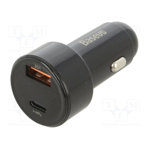 BASEUS CCMLC20C-01 | Блок живлення USB; USB A гніздо,USB C гніздо; 45Вт; чорний; 6А