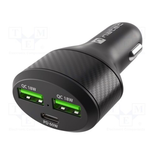 NATEC NUC-1981 | Блок живлення USB; USB A гніздо x2,USB C гніздо; 5÷20В; 60Вт