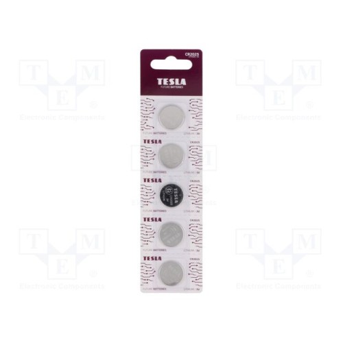 TESLA BATTERIES 8594183397375 | Батарея: літієва; CR2025,дискова; 3В; неперезаряджувальна; 5шт.