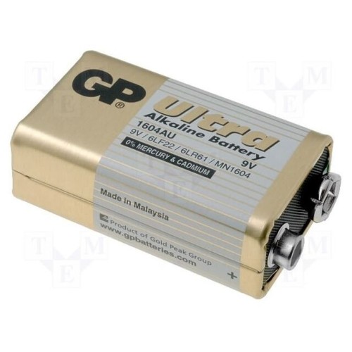 GP 1604AU | Батарея: лужна; 6F22; 9В; неперезаряджувальна; 48,5x26,5x17,5мм