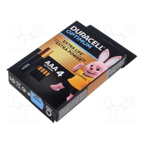 DURACELL 5000394158726 | Батарея: лужна; AAA; 1,5В; неперезаряджувальна; 4шт; Optimum