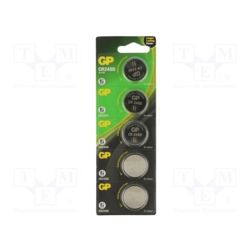 GP CR2450-2CPU5 | Батарея: літієва; CR2450,дискова; 3В; 610мАг; неперезаряджувальна