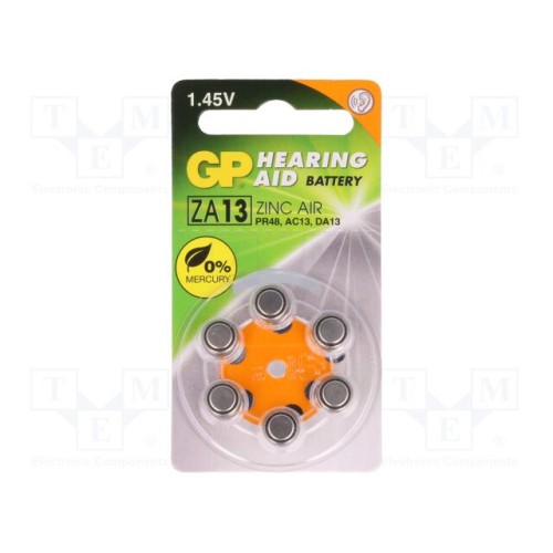 GP ZA13 | Батарея: цинк-повітряна (ZnO2); AC13,дискова,R754; 1,4В; 6шт.
