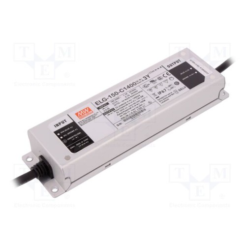 MEAN WELL ELG-150-C1400-3Y | Блок живлення: імпульсний; LED; 149,8Вт; 54÷107ВDC; 1400мА; IP67