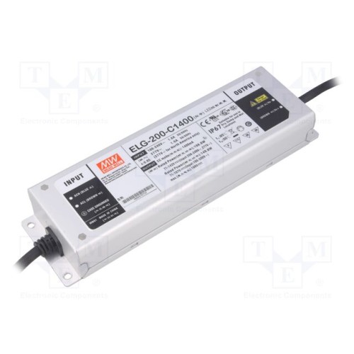 MEAN WELL ELG-200-C1400 | Блок живлення: імпульсний; LED; 198,8Вт; 71÷142ВDC; 1400мА; IP67
