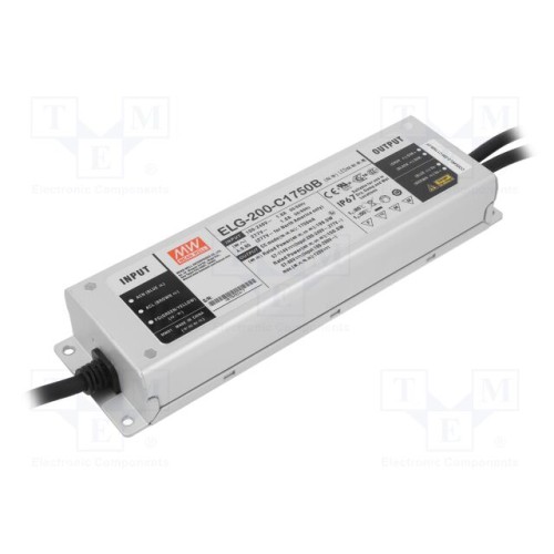 MEAN WELL ELG-200-C1750B-3Y | Блок живлення: імпульсний; LED; 199,5Вт; 57÷114ВDC; 1750мА; IP67