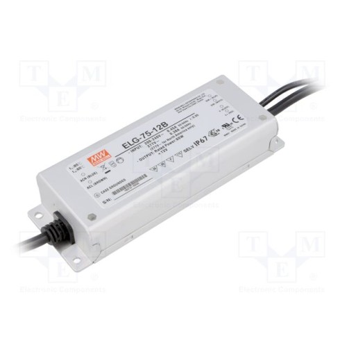 MEAN WELL ELG-75-12B | Блок живлення: імпульсний; LED; 60Вт; 12ВDC; 5А; 180÷295ВAC; IP67