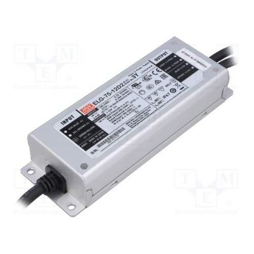 MEAN WELL ELG-75-12D2-3Y | Блок живлення: імпульсний; LED; 60Вт; 12ВDC; 5А; 100÷305ВAC; IP67