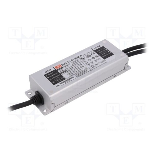 MEAN WELL ELG-75-C1050DA | Блок живлення: імпульсний; LED; DALI; 75Вт; 35÷71ВDC; 1,05А; IP67