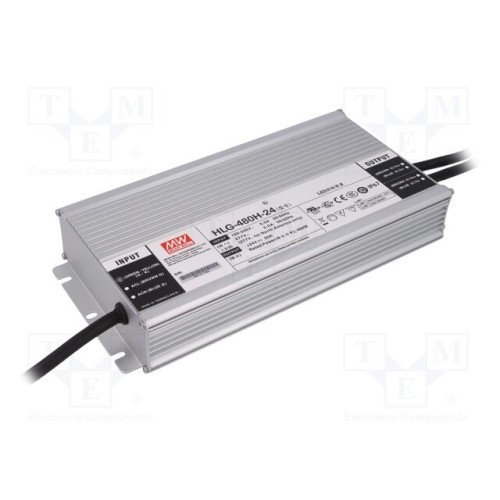 MEAN WELL HLG-480H-24 | Блок живлення: імпульсний; LED; 480Вт; 24ВDC; 20А; 90÷305ВAC; IP67