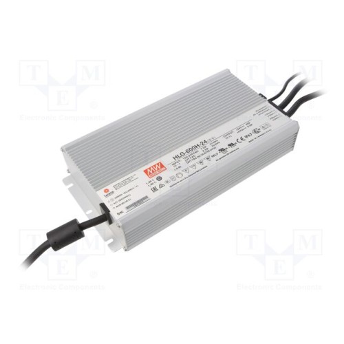 MEAN WELL HLG-600H-24 | Блок живлення: імпульсний; LED; 600Вт; 24ВDC; 25А; 90÷305ВAC; IP67