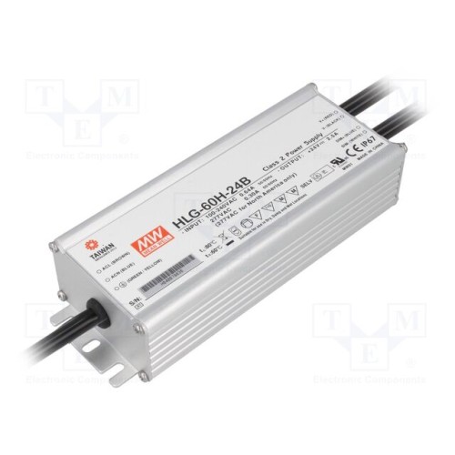 MEAN WELL HLG-60H-24B | Блок живлення: імпульсний; LED; 60Вт; 24ВDC; 2,5А; 90÷305ВAC; IP67