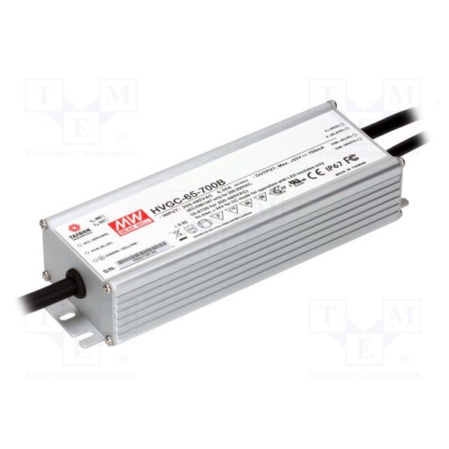 MEAN WELL HVGC-65-700B | Блок живлення: імпульсний; LED; 65,1Вт; 9÷93ВDC; 700мА; 180÷528ВAC