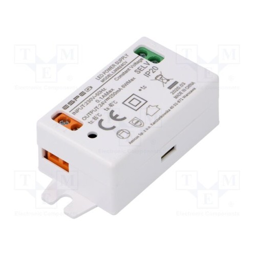 ESPE LN0624CV | Блок живлення: імпульсний; LED; 6Вт; 24ВDC; 250мА; 220÷240ВAC; IP20