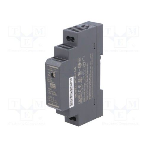 MEAN WELL HDR-15-5 | Блок живлення: імпульсний; на рейці DIN; 12Вт; 5ВDC; 2,4А; OUT: 1