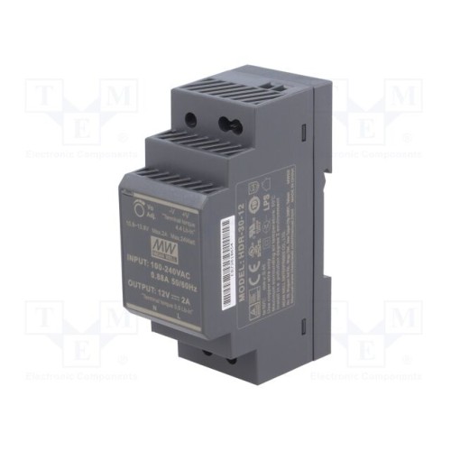 MEAN WELL HDR-30-12 | Блок живлення: імпульсний; на рейці DIN; 24Вт; 12ВDC; 2А; OUT: 1