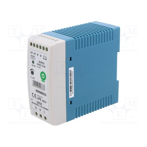 POS POS MDIN60W12 | Блок живлення: імпульсний; на рейці DIN; 60Вт; 12ВDC; 180÷264ВAC