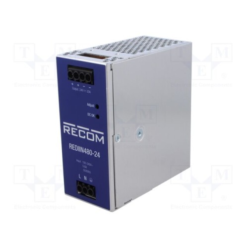 RECOM REDIIN480-24 | Блок живлення: імпульсний; на рейці DIN; 480Вт; 24ВDC; 20А; 93%