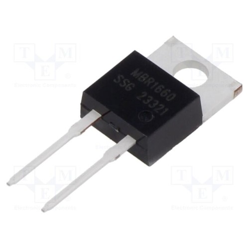 SMC DIODE SOLUTIONS MBR1660 | Діод: випрямний Шотткі; THT; 60В; 16А; TO220AC; Ufmax: 750мВ; Ir: 1мА