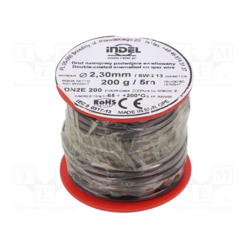 INDEL DN2E2,3-200G | Дріт обмотувальний; подвійно емальований; 2,3мм; 0,2кг; Жила: Cu