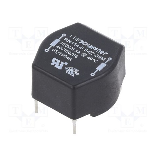 SCHAFFNER / TE Connectivity RN114-0.5-02-39M | Реактор: дротяний з компенсацією; THT; 500мА; 830мОм; 20,1x12,5мм