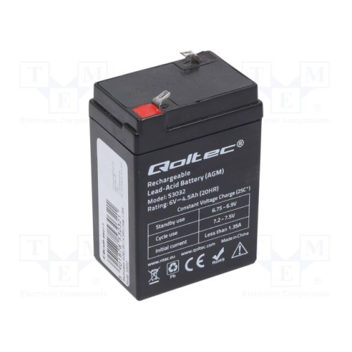 QOLTEC 53032 | Акум: кислотно-свинцевий; 6В; 4,5Аг; AGM; не вимагає обслуг.