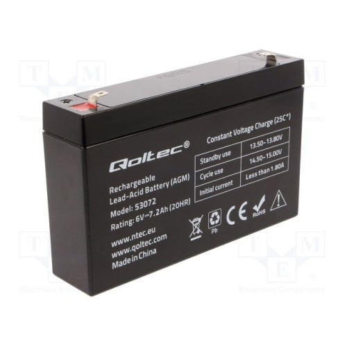 QOLTEC 53072 | Акум: кислотно-свинцевий; 6В; 7,2Аг; AGM; не вимагає обслуг.