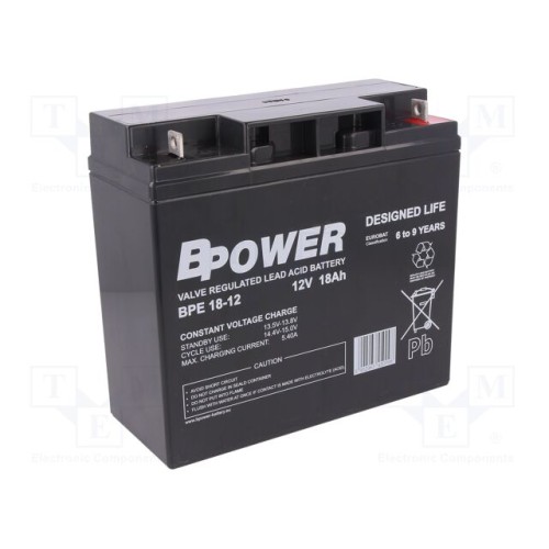 BPOWER BPE 18-12 | Акум: кислотно-свинцевий; 12В; 18Аг; AGM; не вимагає обслуг; BPE