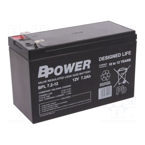 BPOWER BPL 7,2-12 | Акум: кислотно-свинцевий; 12В; 7,2Аг; AGM; не вимагає обслуг.