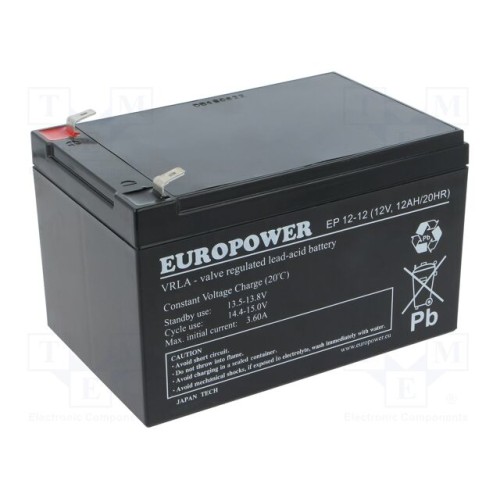 EUROPOWER EP 12-12 | Акум: кислотно-свинцевий; 12В; 12Аг; AGM; не вимагає обслуг; EP