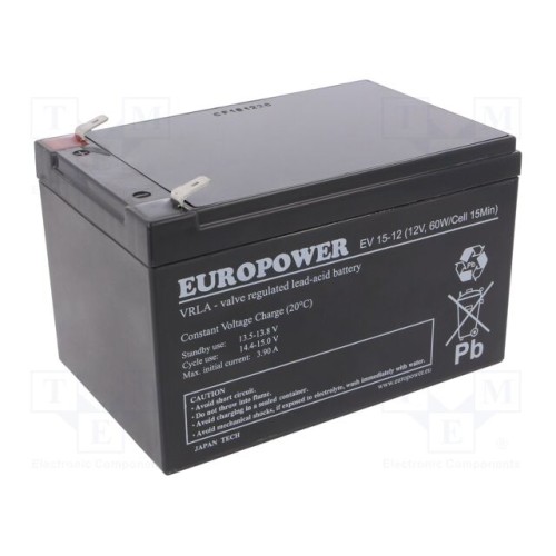 EUROPOWER EV 15-12 | Акум: кислотно-свинцевий; 12В; 13Аг; AGM; не вимагає обслуг; EV