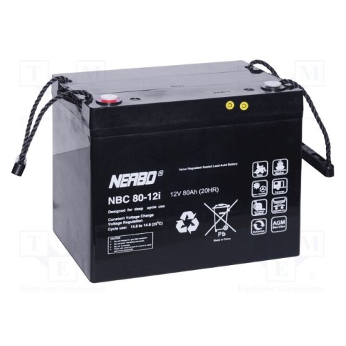 NERBO NBC 80-12I | Акум: кислотно-свинцевий; 12В; 80Аг; AGM; не вимагає обслуг.
