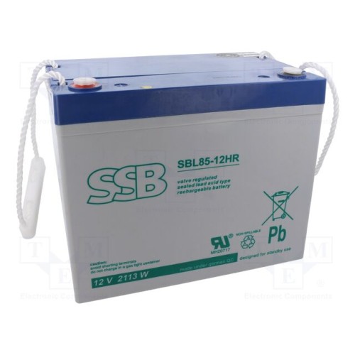 SSB SBL 85-12HR | Акум: кислотно-свинцевий; 12В; 75Аг; AGM; не вимагає обслуг.