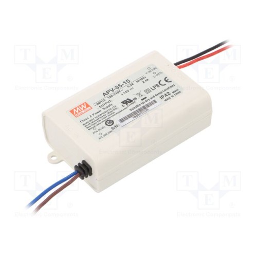 MEAN WELL APV-35-15 | Блок живлення: імпульсний; LED; 36Вт; 15ВDC; 2,4А; 90÷264ВAC; IP42