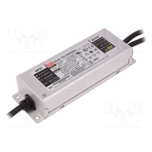 MEAN WELL ELG-75-C500D2 | Блок живлення: імпульсний; LED; 75Вт; 75÷150ВDC; 500мА; 100÷305ВAC