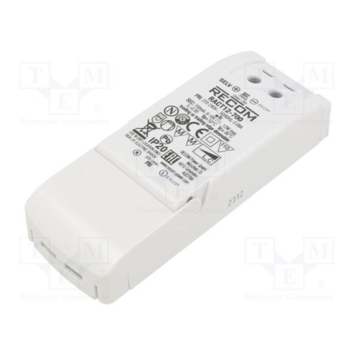 RECOM RACT12-700 | Блок живлення: імпульсний; LED; 12Вт; 9÷18ВDC; 700мА; 198÷264ВAC