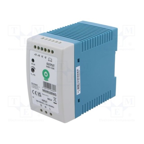POS POS-MDIN100W5 | Блок живлення: імпульсний; на рейці DIN; 50Вт; 5ВDC; 10А; OUT: 1