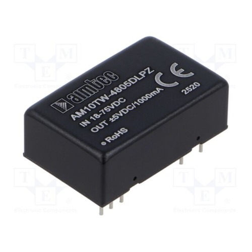 AIMTEC AM10TW-4805DLPZ | Перетворювач: DC/DC; 10Вт; Uвх: 18÷75ВDC; Uвих: 5ВDC; Uвих.2: -5ВDC