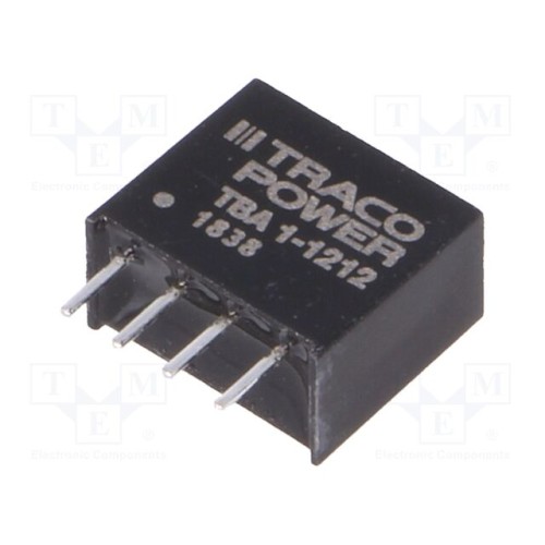 TRACO POWER TBA 1-1212 | Перетворювач: DC/DC; 1Вт; Uвх: 10,8÷13,2ВDC; Uвих: 12ВDC; Iвих: 80мА