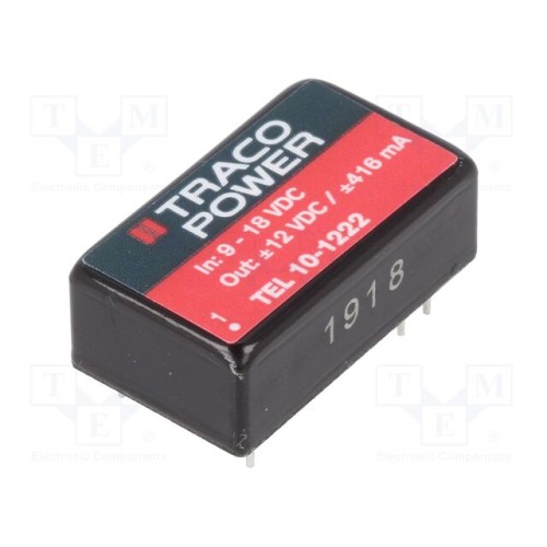 TRACO POWER TEL 10-1222 | Перетворювач: DC/DC; 10Вт; Uвх: 9÷18ВDC; Uвих: 12ВDC; Uвих.2: -12ВDC