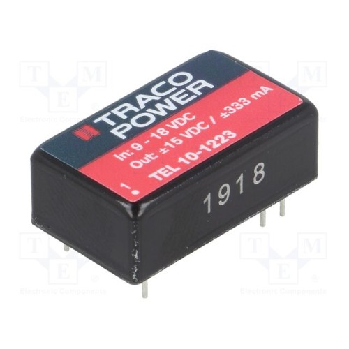 TRACO POWER TEL 10-1223 | Перетворювач: DC/DC; 10Вт; Uвх: 9÷18ВDC; Uвих: 15ВDC; Uвих.2: -15ВDC